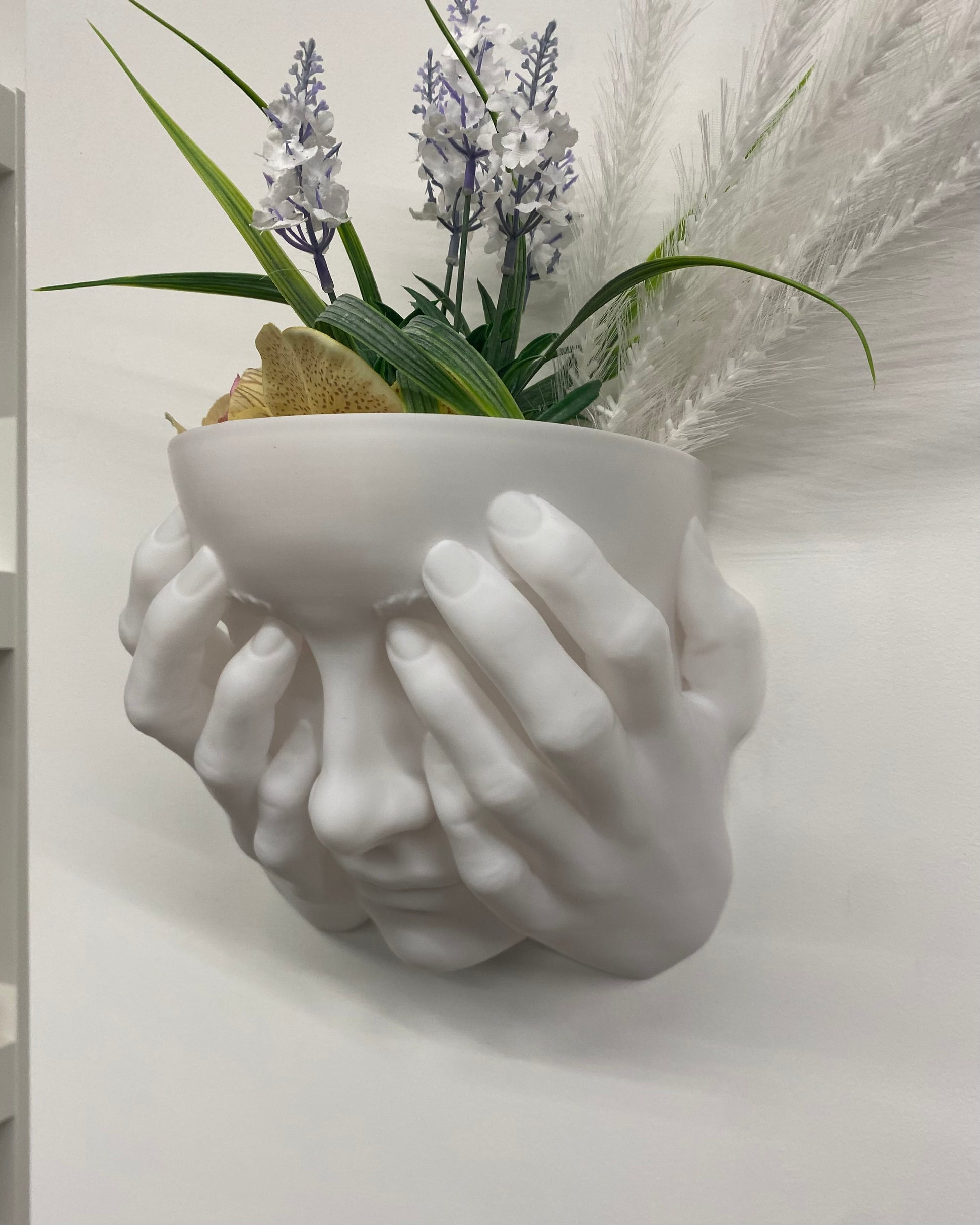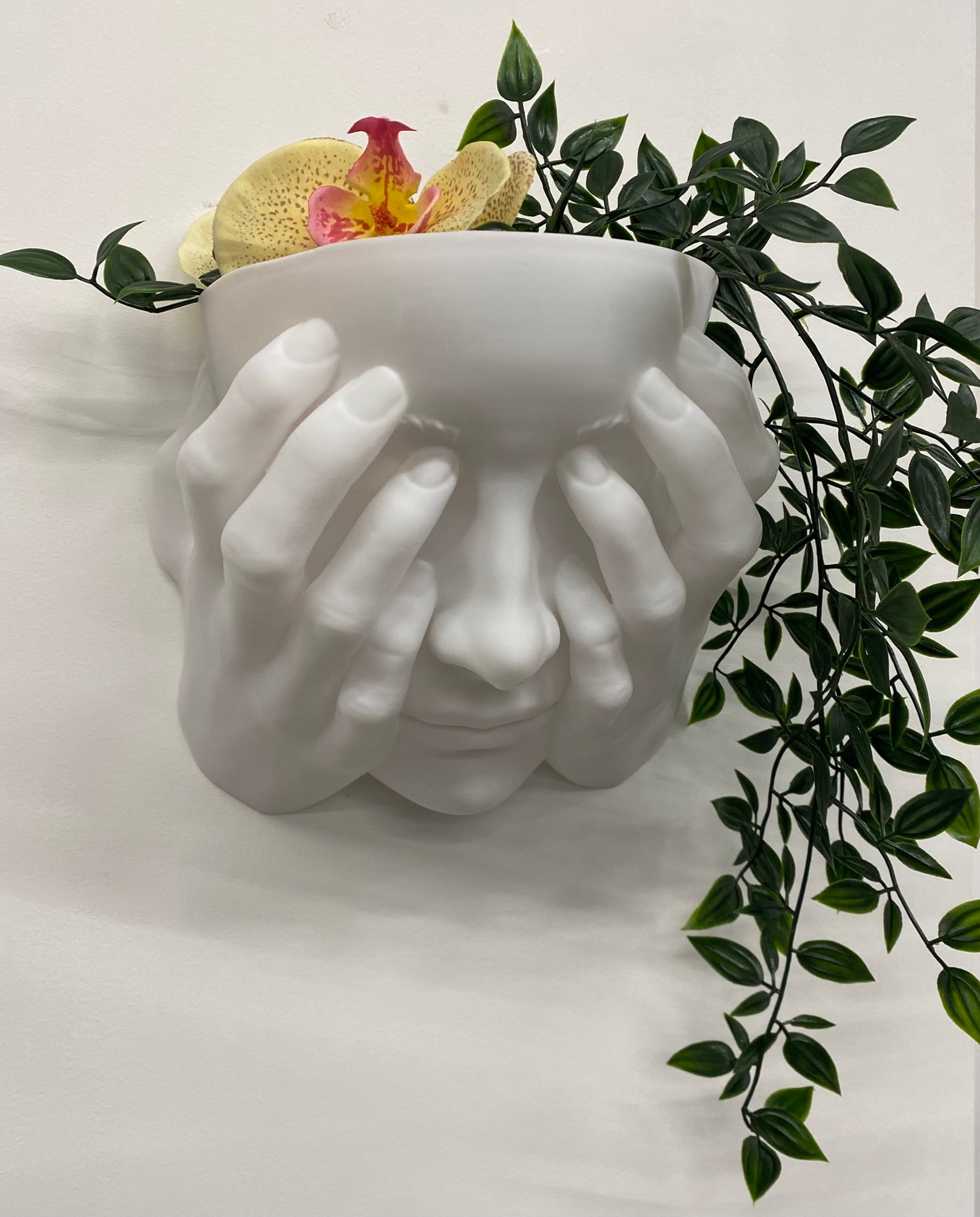 Scultura Fioriera 'Non Vedo' – Design Bianco Opaco da Parete (26 cm)